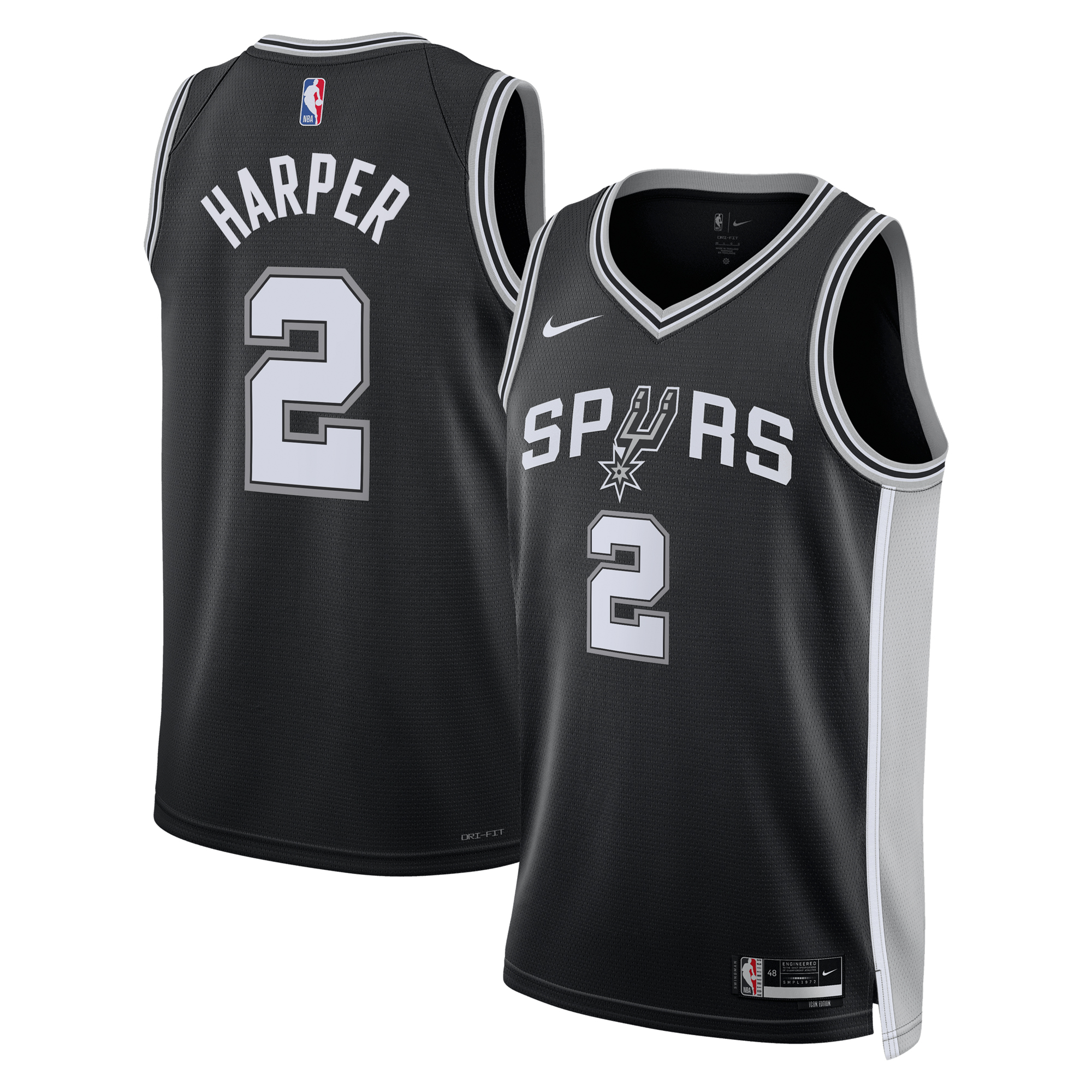 Get ready for the future of San Antonio Spurs basketball with this Dylan Harper2025 NBA Draft First Round Pick Swingman Jersey. This Nike Icon edition jersey features heat-applied twill team and player details, along with a heat-applied Swoosh logo. Constructed with double-knit fabric with a mesh texture, it offers a standard fit for relaxed comfort and a droptail hem with side splits for extended coverage. As part of Nike’s Move To Zero initiative, this jersey is made with at least 75% sustainable materials, combining style with environmental consciousness. Celebrate the next generation of San Antonio Spurs talent with this elevated look.